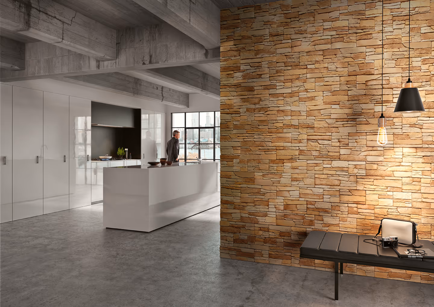 Concrete wall coverings.